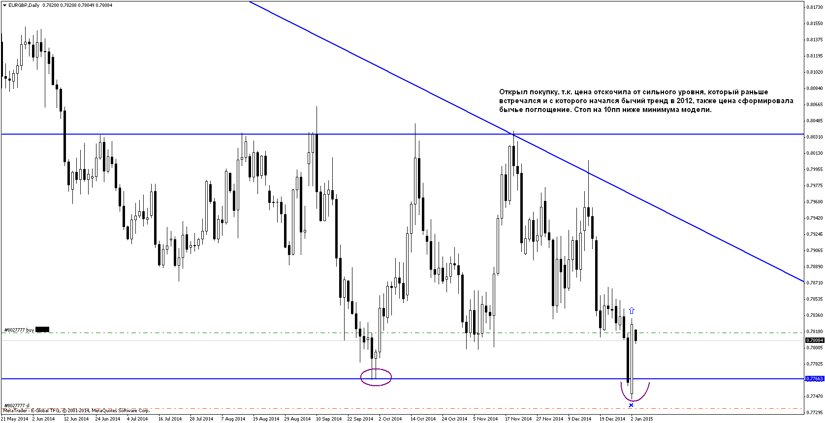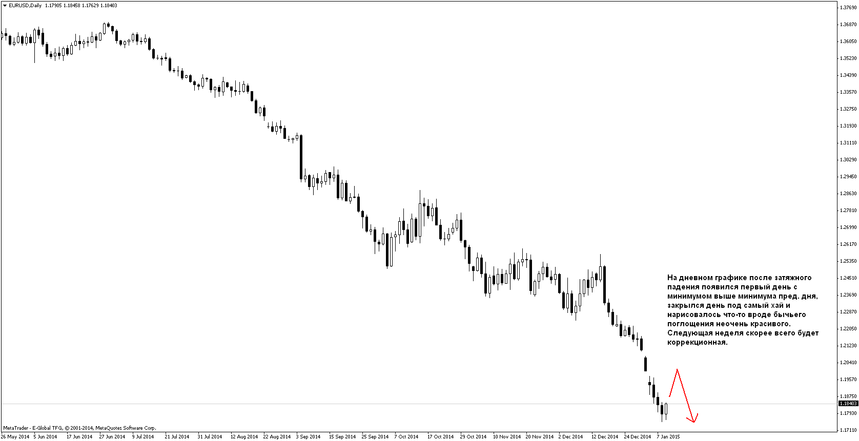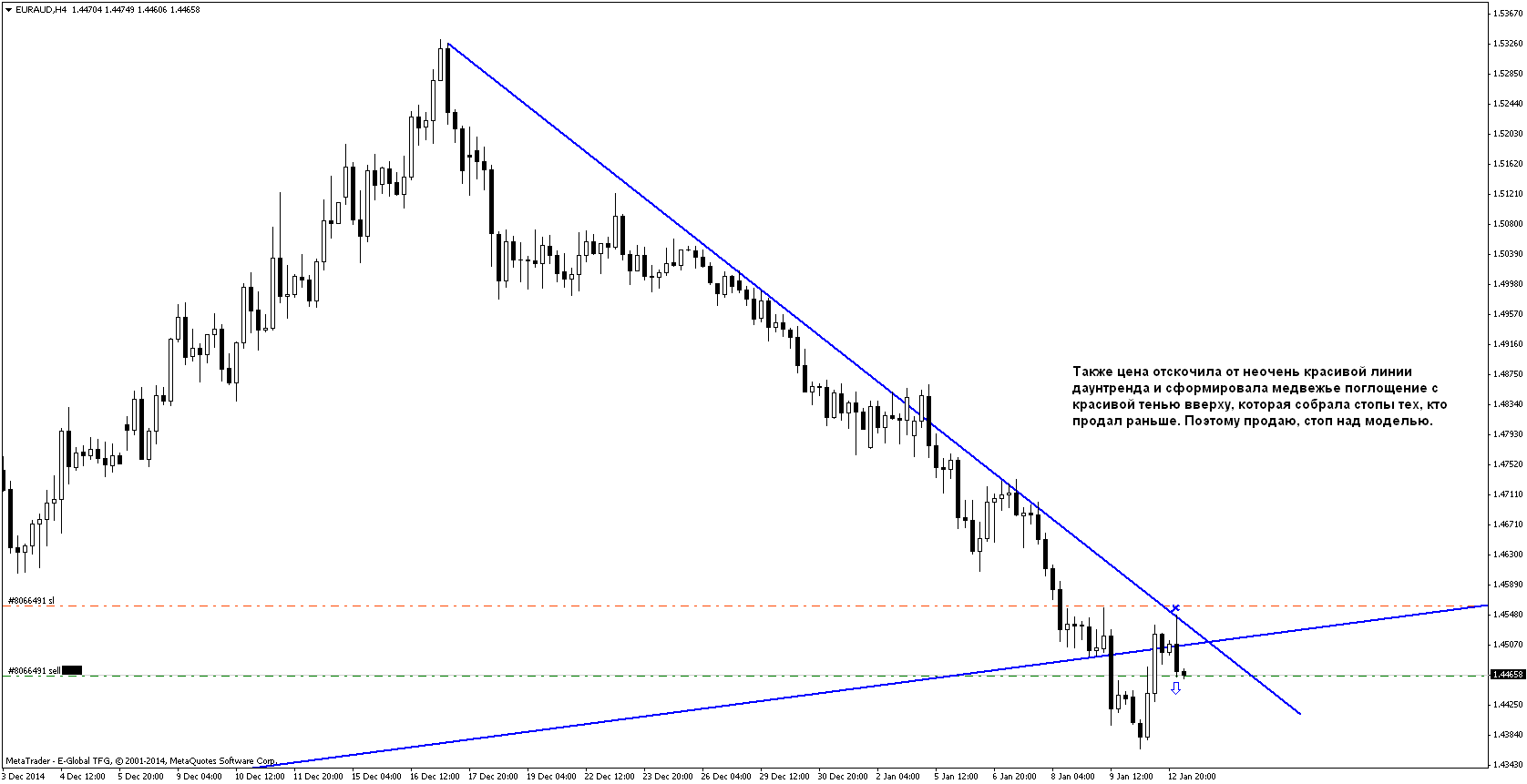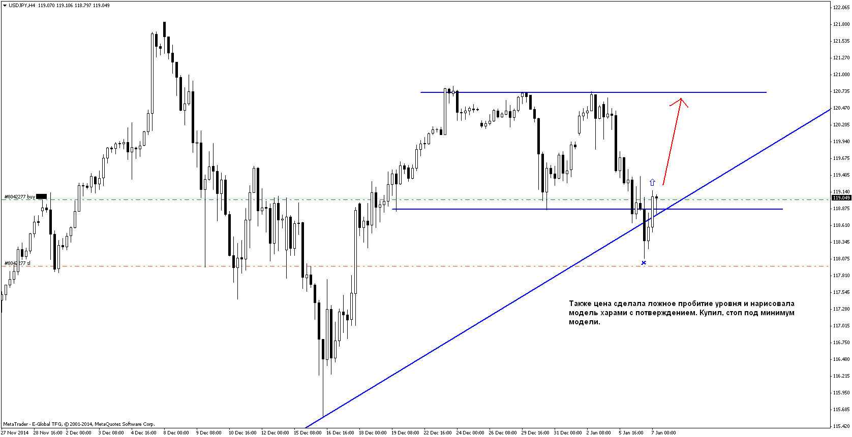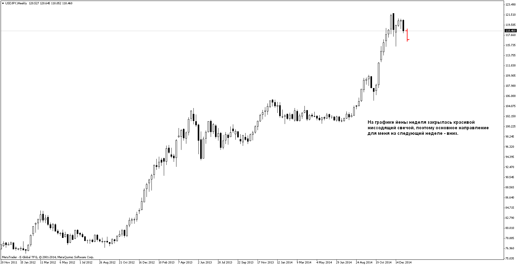 Итог недели:-14 пунктов. Пришёл к выводу, что свинговые сделки по дневкам не для меня. Большую часть недели сидел в покупке по ЕвроФунту, были хорошие точки входа на других парах на Н4, но их я не открывал, т.к. открыта была сделка по еврофунту и суммарный риск был бы слишком большой. Поэтому в будущем если будет сигнал на дневном графике, то я просто буду на Н4 искать точки входа по направлению дневного сигнала; но заходить по дневкам, ставить большой стоп и сидеть днями, ждать, что будет, не для меня. Также был хороший вход по йене, всё отработало по плану, мог бы заработать 70-80пп, но отступился от системы и перевёл стоп в безубыток перед важными новостями, чего делать не следовало. Меня благополучно выкинули в ноль и пошла цена дальше вверх. Поэтому в будущем не буду ориентироваться на новости, а буду просто торговать график. Вообще неделя была хорошая, были классные движения, но в основном я "сидел на заборе" и с жадностью смотрел на них) Надеюсь, следующая неделя также будет достаточно волатильна и можно будет немножко заработать.